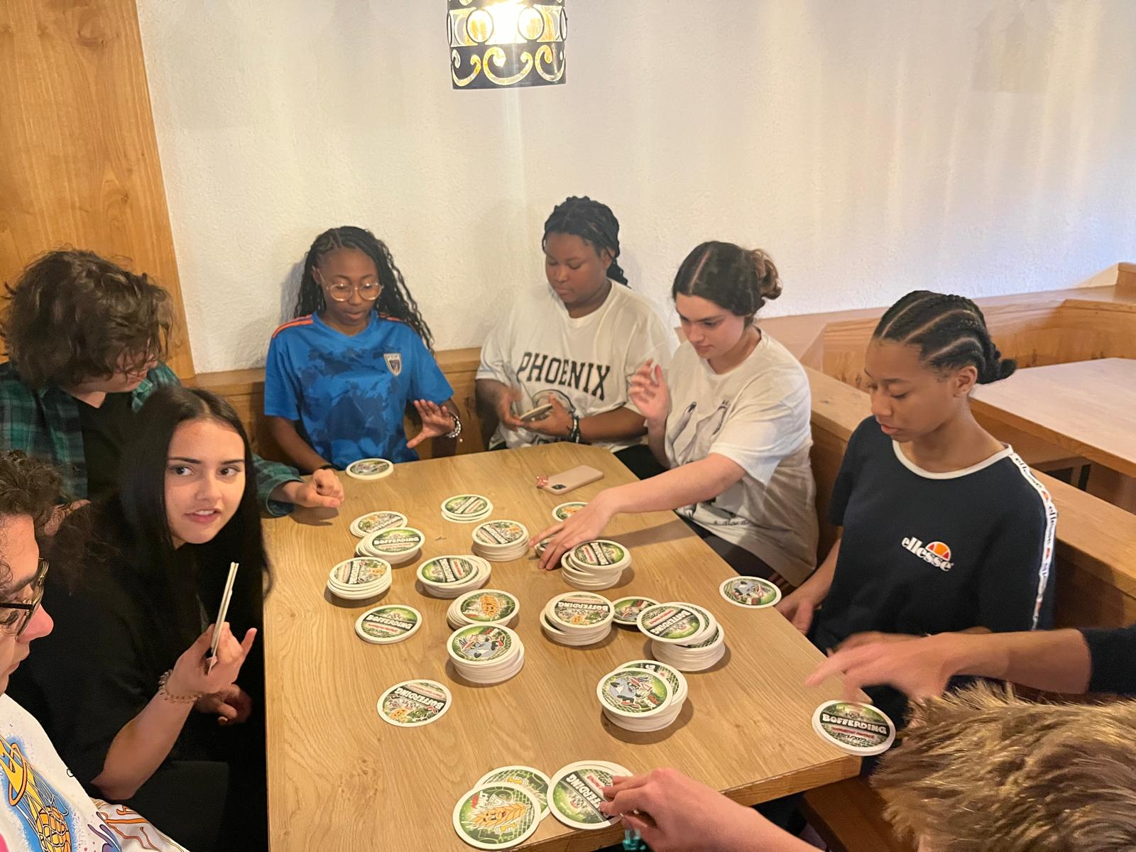 Nach anspruchsvollen Wandertagen klang der Abend für die Schülerinnen und Schüler bei geselligen Sportaktivitäten oder am idyllischen Schwimmteich aus.