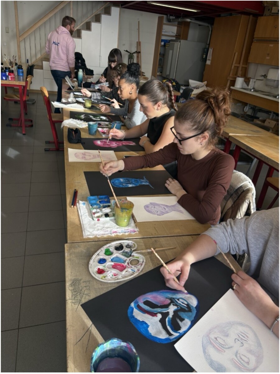 Le workshop s’est déroulé dans une atmosphère à la fois studieuse et stimulante sur le plan créatif. L’échange direct avec un artiste professionnel a favorisé l’engagement des élèves et renforcé leur compréhension des enjeux liés à la pratique contemporaine.
