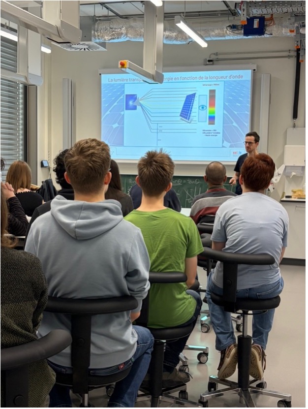 Den Dag huet mat enger theoretescher Aféierung an d’Halbleiter an d’Funktiounsweis vu Solarzellen ugefaangen. D’Schülerinnen a Schüler kruten erkläert, wéi d’Sonnenenergie an elektresch Energie ëmgewandelt gëtt an am Alldag benotzt ka ginn. Si kruten och en Abléck an déi aktuell Fuerschung am Beräich vun de Solarzellen an d’Grënn erkläert, firwat et verschidde Solarzellentechnologië ginn.